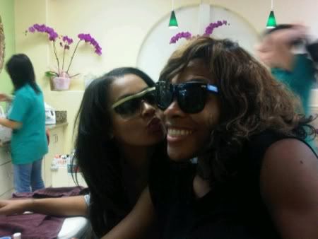 Serena Williams (@serenajwilliams) is making moves and is not letting her little boot slow her down! She twitpic'd herself with newlywed LaLa Vasquez (@lala) while they were getting their nails done.