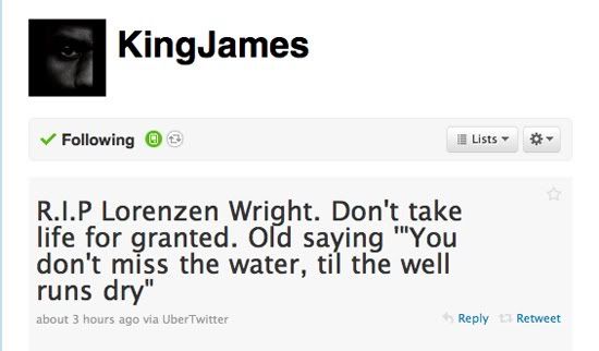 The family issued a statement through a cousin of Lorenzen Wright, Camella Logan: "Lorenzen's family has come together to mourn his loss and honor his legacy."